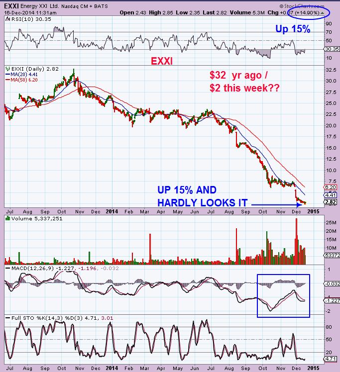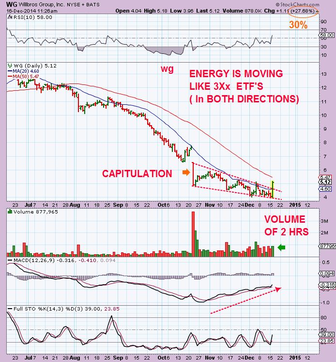 SO I wanted to share that outlook with you , because SOME energy stocks have Popped up 100% off thier lows. As oil is at lows, these are holding up. It indicates that likely they all got caught up in OILS slide, but now they dont belong down here. Some have great upside potential if the energy recovery continues.