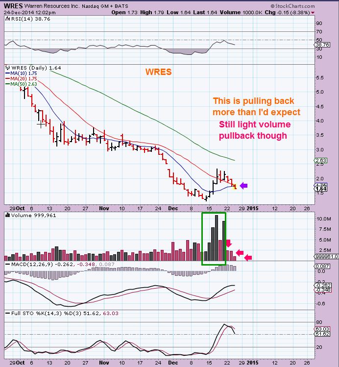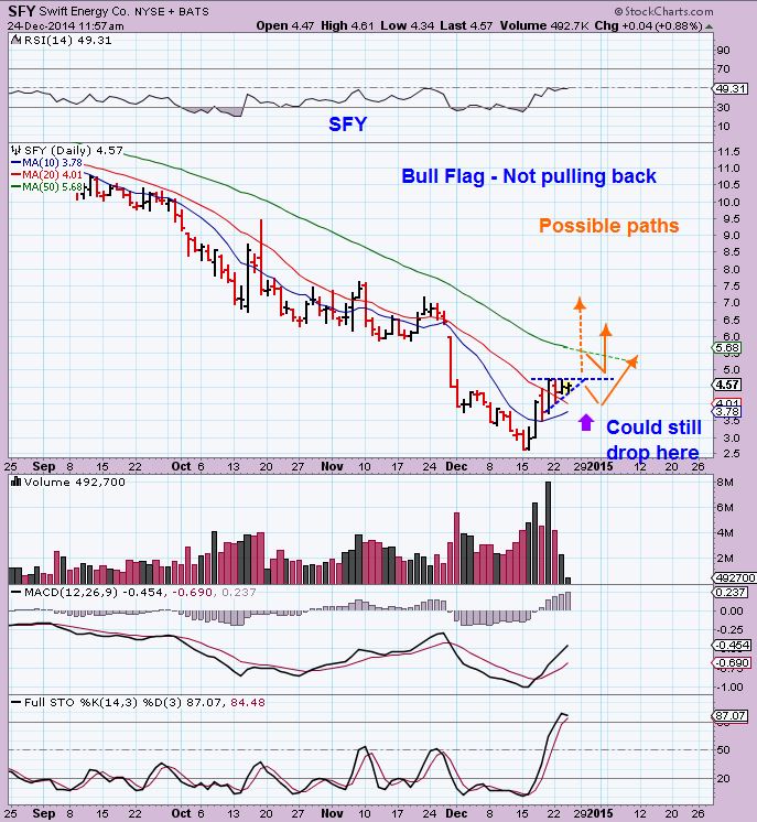 Now I want to show something else. I am currently looking at a Bull Flag in SFY – ( Above I showed NBR and BAS with bull flags too) They could break higher, some others have as shown- but I also was watching a Bull flag in WRES and it has dipped UNDER THE MOVING AVERAGES. Let me show you WRES