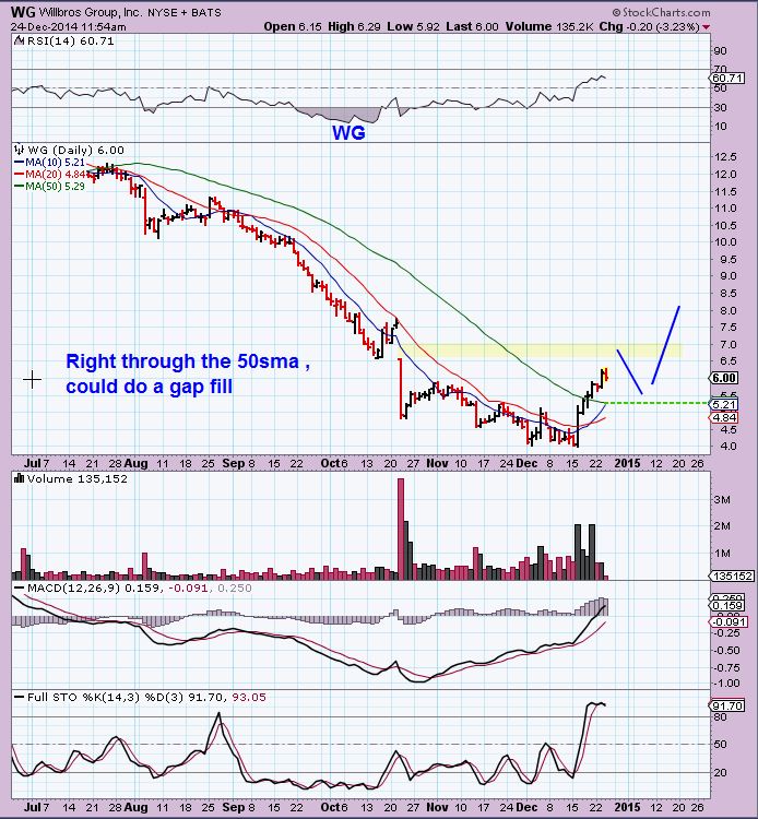 WG – is one of the ones that hasnt turned back ( Even at the 50sma). It may fill that gap & then drop to the 50sma