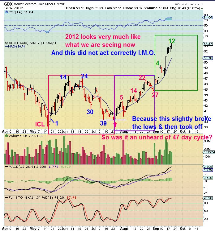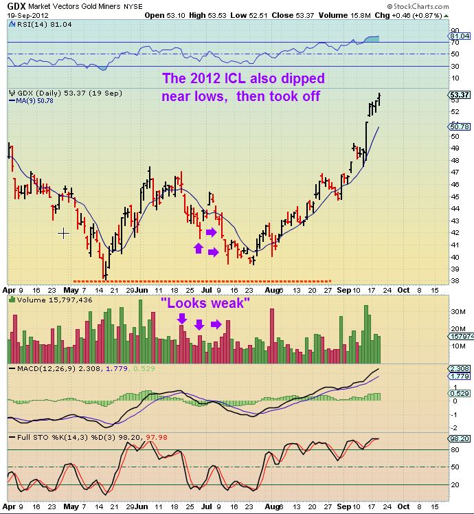 GDX 2012  – Notice ICL in May, to lows in mid July.  And it dipped deep like GDX is now.  People said it  “LOOKS SO WEAK”   ( But look at that launch)