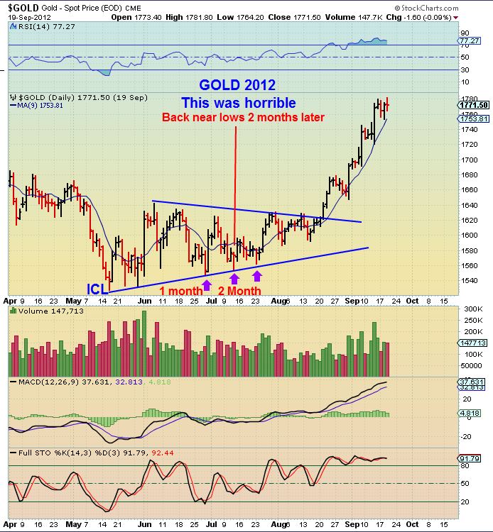 Lets zoom in….This is GOLD in the summer of 2012.  This cycle was so stretched  (I have no idea why,  but it seemed to last forever)  2 months later we were still near the lows!! Look at that blast off though  when it finally got going.