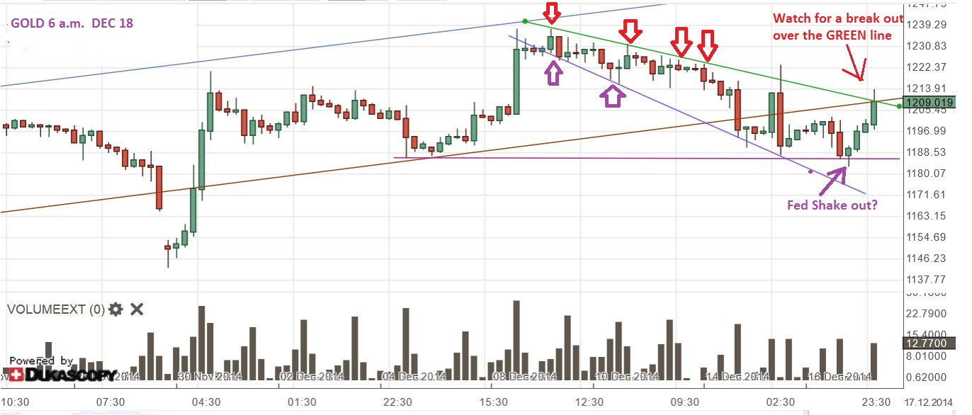 SO we have a lot to watch ,but things are lined up nicely here in many ways. I think many Miners are a buy here already .  I Use technical analysis & cycles for timing  and I am writing with confidence that what I watched yesterday ( And the past couple days where some Miners stayed above thier 50sma and stayed strong in a silver sell off, etc )  was the unfolding of a Buy opportunity in Miners.   A Daily Cycle low appears to be in close if not here Miners & Technical analysis helped me to enter at a double test of the down channel, as shown above.   Some are going to be gun shy,  Understandable. You may want to wait until GOLD itself puts in a reversal and trades above $1208.  This would be back above its 10sma & also puts a swing low in, since Wednesdays candle  was a small trading range,  and its highs were $1203.10 .   Many Miners are set up nicely and I can list some  that I like, but you can just buy them as they  breaks above their moving averages short term.   I think the ones that ran best in NOV , or held up the best recently should give you decent %-Gains.   We may have lows forming across the board,  so there can be many trading opportunities . Use ETF’s  if that is your comfort level.  I will release this early tomorrow (Thursday) .