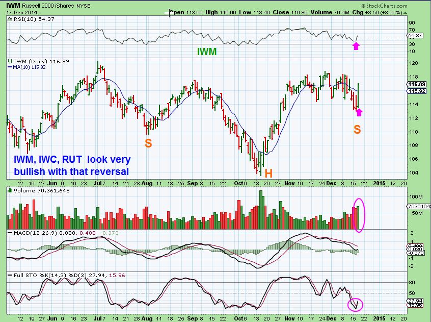 The IWM, IWC, RUT were big reversal moves –  they all look very similar & I suspect  these could break out above their prior highs as inverse H&S