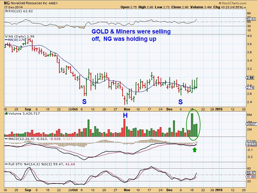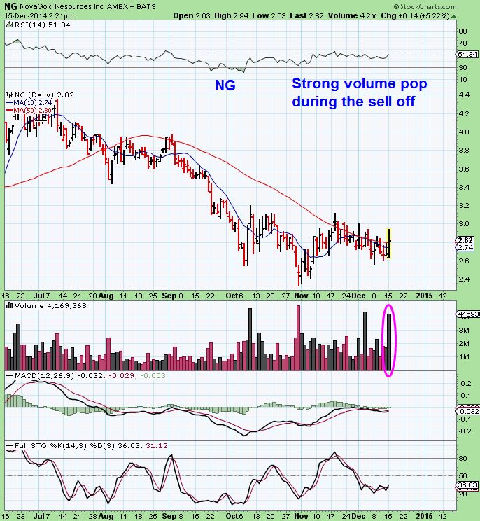 I also have been reporting that with Gold/Silver selling off  2 days ago  (SILVER was down $0.60 cents the other day…some gold & silver miners were actually green and looking good). Signs of bottoming ?  Leaders?  Let me show you just a few of those from 2 days ago & yesterday …