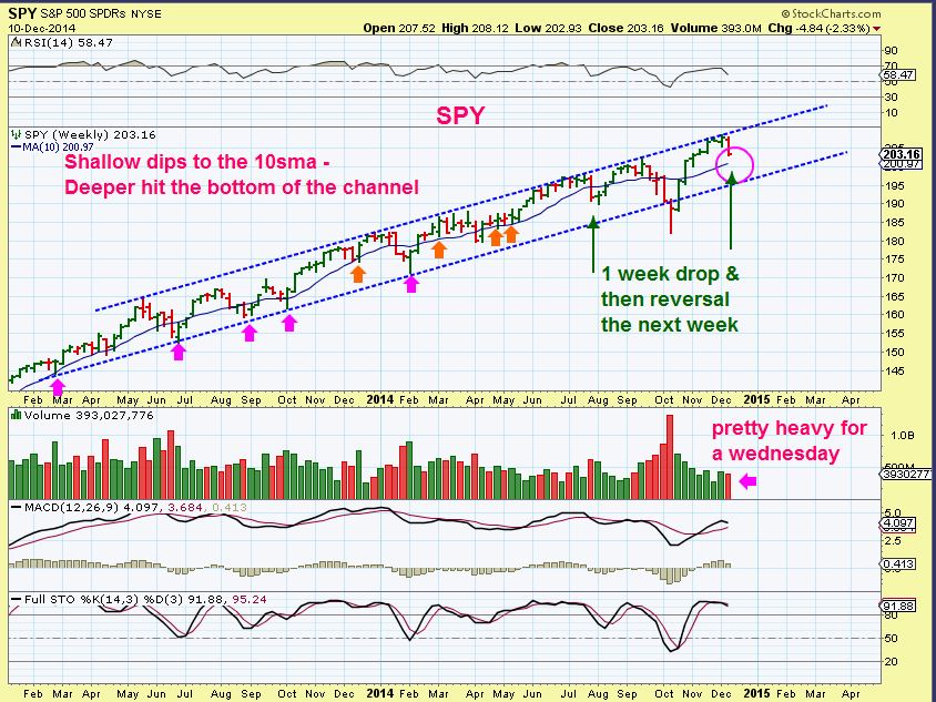 With the Markets , I pointed this chart out  Dec 10 to show areas to take note of when we started our correction . 10WMA or lower trend line