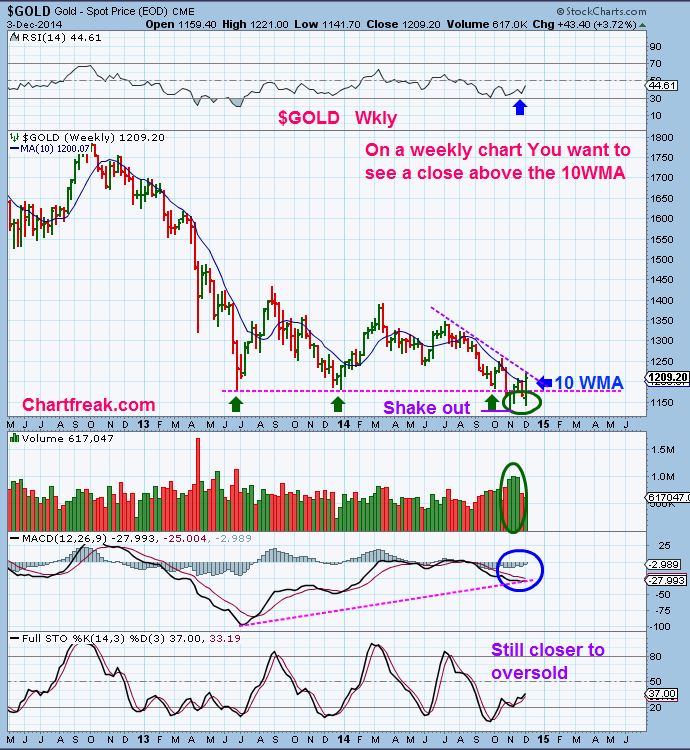 GOLD WKLY as of DEC 3  (Classic shake out if you ask me)