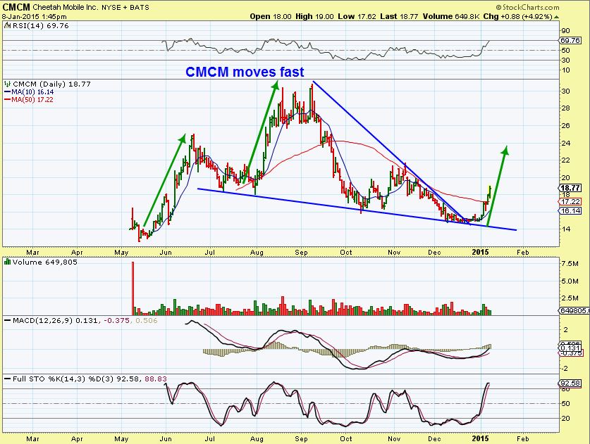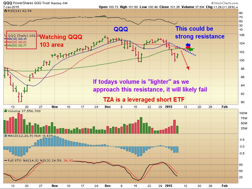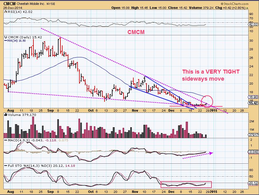 Looking at the ones that I said were ugly ( GOOG, AMZN, PCLN, etc ) I see a little improvement , Even possible trade able reversals off the lows. So we stay frosty and keep watch for follow thru. Some trades can be taken if you are in front of a computer, if not…PATIENCE may be well rewarded this year with some longer term BUY & HOLD set ups forming later – if the small cap / micro cap theory that I have been sharing works out. I will be able to watch for certain set ups going forward that can break out & run . We may get channels that head higher and we can enter at low risk pullbacks and sell at the tops of the channels.