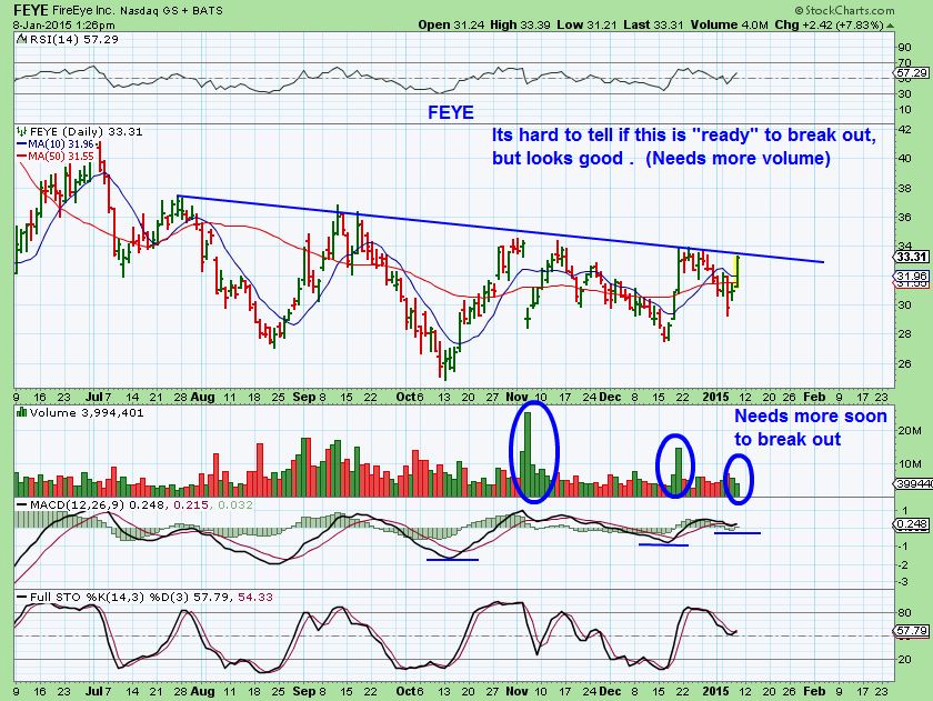 FEYE ( I like the set up, but volume seems to light to break out) Put on watchlist