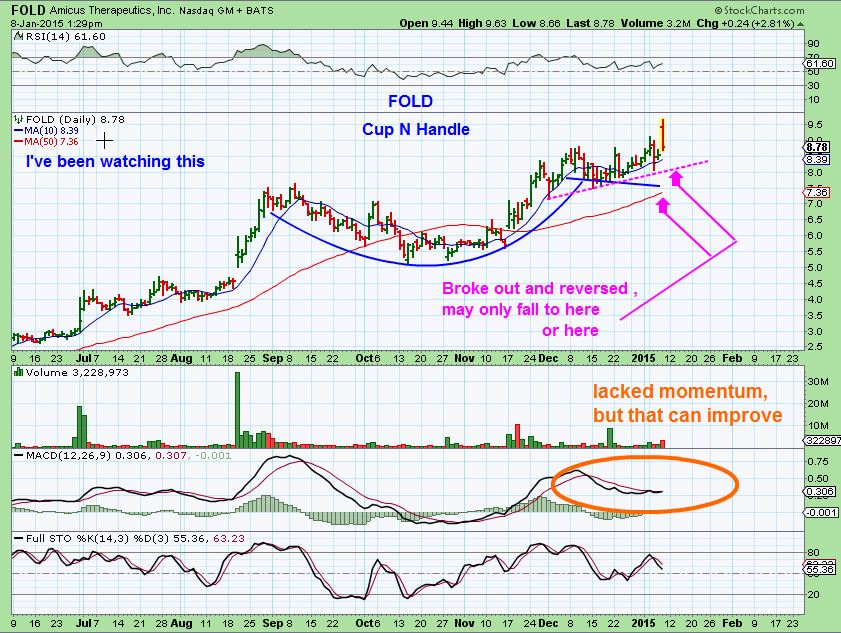 FOLD broke out of a cup & handle , but gave it up. It can be watched for improvement