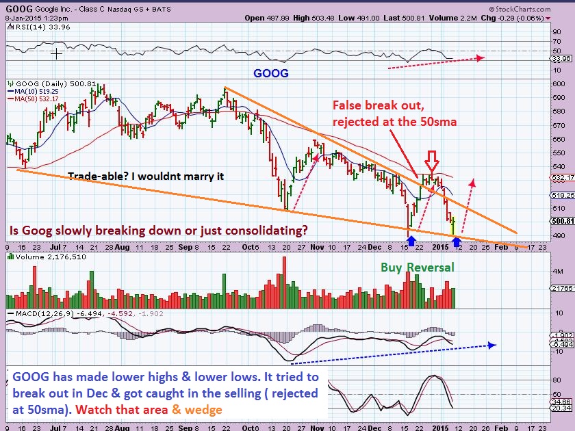 So yesterday  I mentioned that some reversals looked good and pointed out this chart of GOOG & it’s reversal , for example .