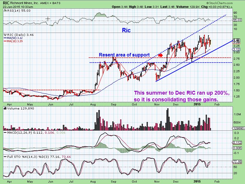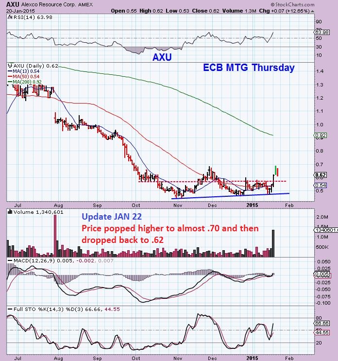 I also pointed out  LSG  on Jan 20 as a “Lagging Miner” that just started moving higher. The weekly looks great too.  It was 60 cents in december, it hit 94 cents yesterday