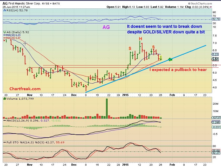 So thats it.  If I cant report tomorrow,  consider this tomorrows ideas a day ahead of time.  This is something for you to watch as a trade idea if you are so inclined.  If you are content waiting for Miners to bottom, remember….some may bottom before others.  “AG” is showing strength in the midst of a sell off today.