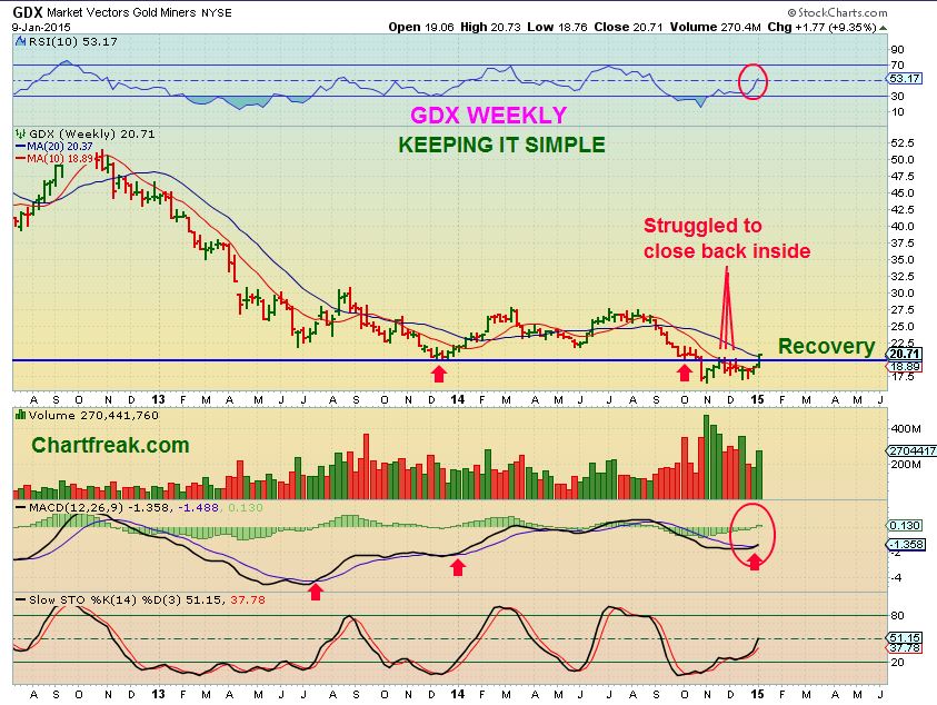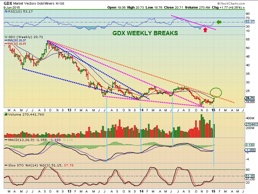 GDX WEEKLY – Many still afraid to buy that base formng. Our Miners ( IAG, CDE, HL, etc mentioned here in Nov & Dec ) are up double digit %, some 50 – 100%