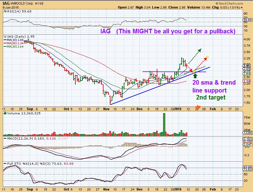 IAG has been strong. It has doubled! So it basically pulled back the past 3 days . Is it sick? No- It hit the 10sma and that might be it. OR it could drop to the trend line. still very healthy looking.
