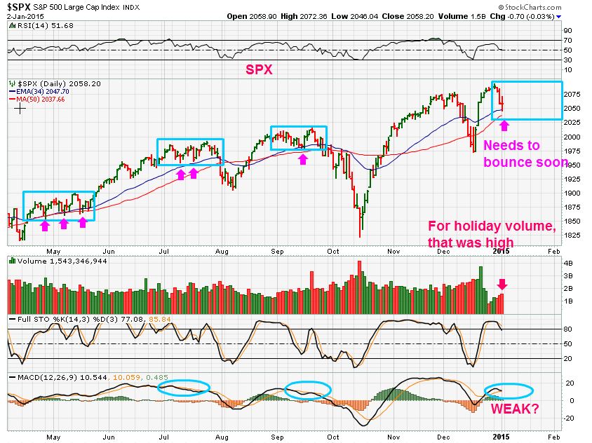 So the SPX DAILY – lose the moving averages, re-gain them, lose them, chop chop chop