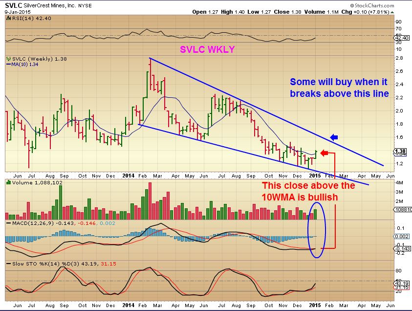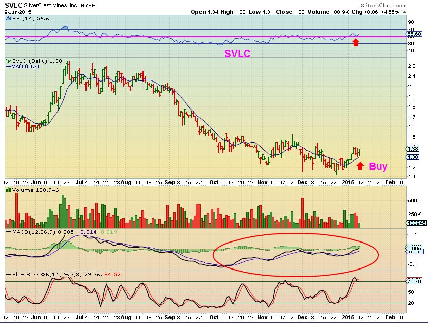 SVLC (Silver stock) this company last yr was a fundamentally sound company. It alwas seems to lag and I dont know why, but when it moves higher, it also caches up nicely (See prior runs). It looks good now (2 charts)
