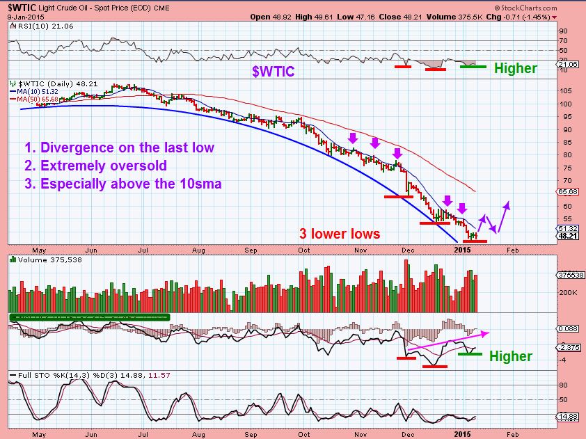 It is dangerous, but I am starting to see ( see the chart ) 1. divergence 2. Oversold ( It can stay that way) 3. Wait for it? Todays low could reverse & bounce, but right now I am not watching this area much .