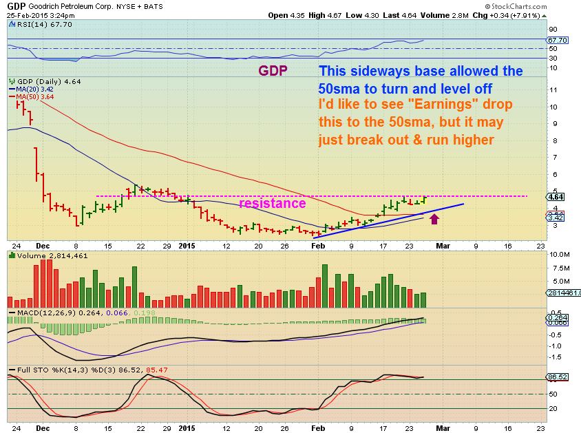 NADL & GDP have earnings tonight. NADL reversed after selling yesterday and GDP looks great. Earnings could cause a break out or pullback (possible buy opportunity).