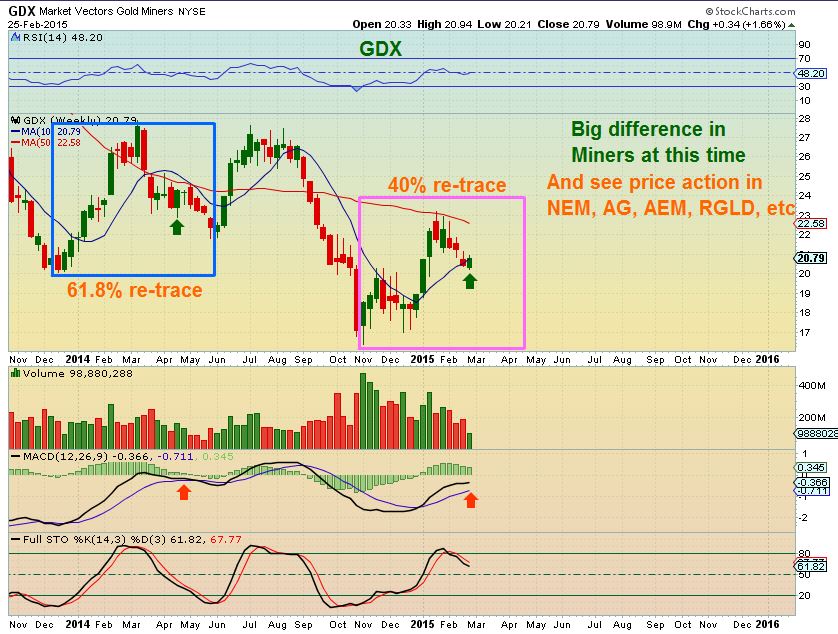 Gold did ok on Friday considering power move in $$ index Thurs/Fri. Miners were out in front of gold again which is good. CF, sure you have pretty much pointed this out at this point, but the Feb pullback in miners was much more shallow than it was in the actual metal (which is a bullish divergence). Also, noticing the pattern of gold putting in highs either overnight or early US trading and fading, miners getting early pop and afternoon fade. So, if anyone is building a 5-8 position and slowly adding, check out the pretty distinct time periods on the intra-day which can help you time entries. Hope all had a good weekend.