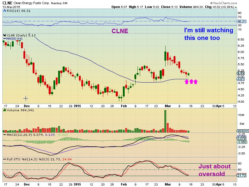 CLNE   is nearing a low risk buy point, but I am watching it for now.  I want to buy these close to the 50sma so that I can use right below that as a stop.
