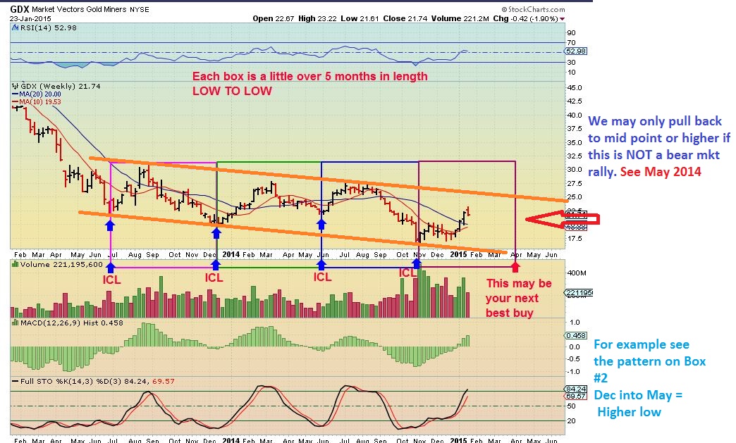 GDX  JAN 23…I looked at it playing out this way into April , and was trying to say that playing a 3rd or 4th Daily cycle can be tricky. Next best Buy is the ICL  ( Deeper lows).