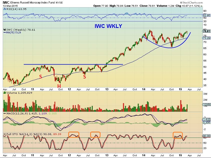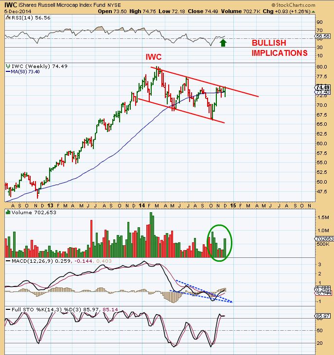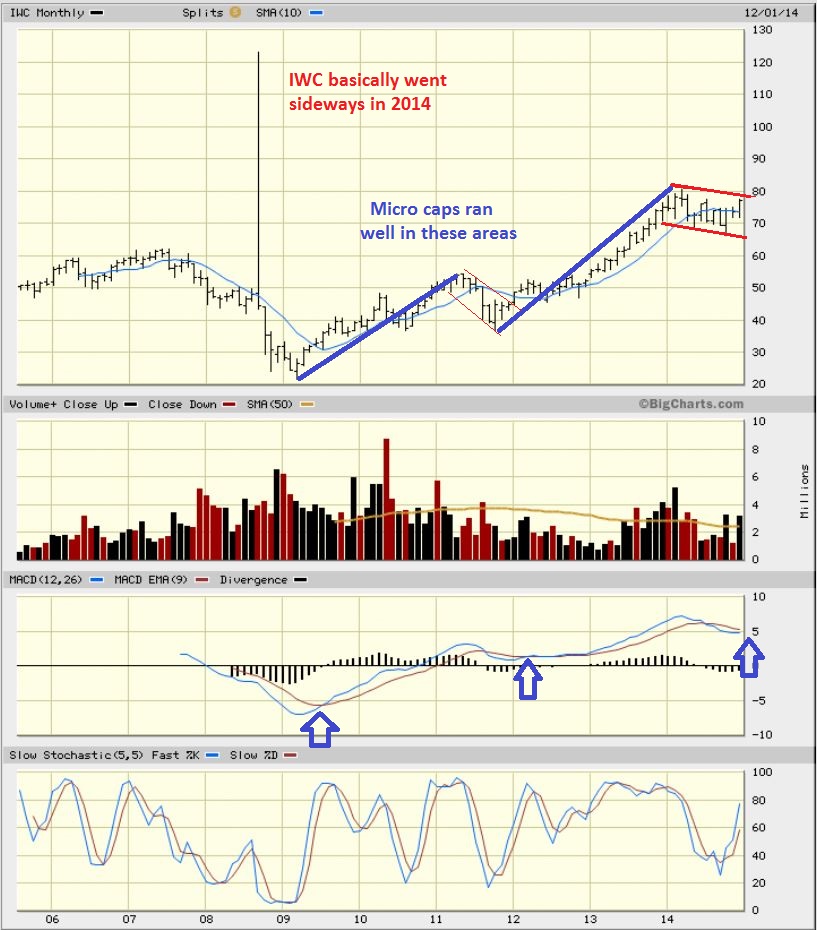 In the past, I noticed and noted some bullish set ups in the Small & Micro-caps  ( IWC , IWM  & RUT).  As the SPX, DJIA, and NASDAQ ran higher, the small caps just sold off & lagged behind.  It didnt look bearish to me , however, it looked like a consolidation .  I posted these Wkly / Monthly bull Flags…