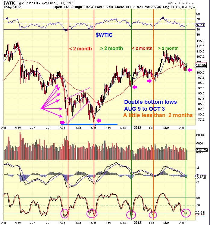 OIL 2012 –  OIL cycles look to vary ….ROUGHLY 2 months , but the chart shows  1.5 or even 2.5 months.