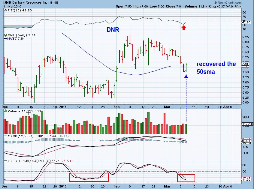 I looked at EXXI, it reversed & looks ready to possibly recover the 50sma. KEG was up 10% & may regain its 50sma, ERF & DNR are there too, so not just 1 or 2, but quite a few are starting to look like they want higher price and selling may be drying up…