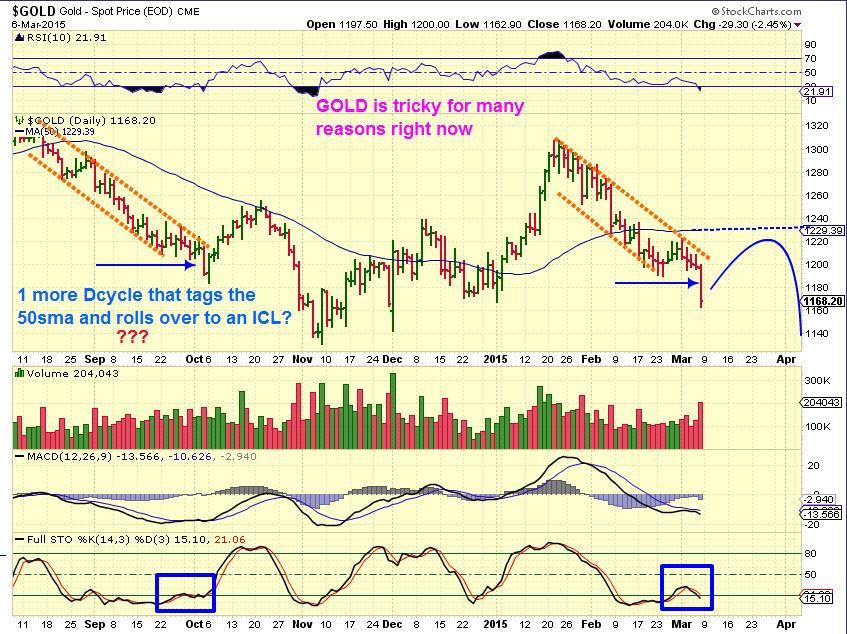 Personally, I thought the action in miners and really more actual gold was near putrid last week. Remebering that this is the ‘bounce’ here. I’m also firmly entrenched in the 4th DCL camp. In Jan the market sell off lent spt to gold, here it is not which worries me (again $$ is also an issue). If broad market regains composure next week (watching Alex’s target), could also hurt. Fed on Wed is the wild card for all. While looking more towards shorting pops in miners not getting carried away ahead of Fed probably a good idea. The most troubling is lack of 4th DCL bounce bodes very poorly for the complex when it drops into the ICL, there isn’t much room below without near bear market lows!!