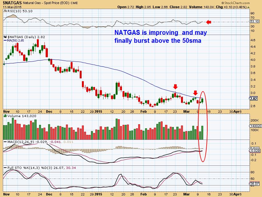 I was thinking that the NATGAS chart was looking weak, unable to break above the 50sma. Futures are RED, but this now looks like it wants to break above the 50sma. INVENTORY REPORT today at 10 a.m. WILL this push it higher? I like the looks of this set up again, I will buy if it rises above the 50sma. The hard part is that most of us trade NATGAS via UGAZ , and it can drop 10-15% per day in this sideways move and has been volatile, so beware and Know & trade only according to your risk parameters.
