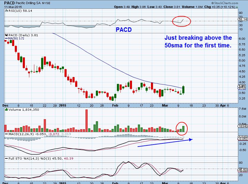 PACD- I like this set up. Remember: These usually break out, run, and return to “Test” the 50sma. They all did, right? SO I will sell if it runs strongly. Also I may be early.