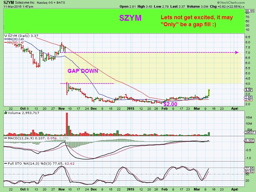 When I am looking at SZYM, I look at AMRS, PEIX , CLNE also, because they are clean fuel too and did the earnings POP first. They POPPED, sold off to near the gap fill , and test the break out area.