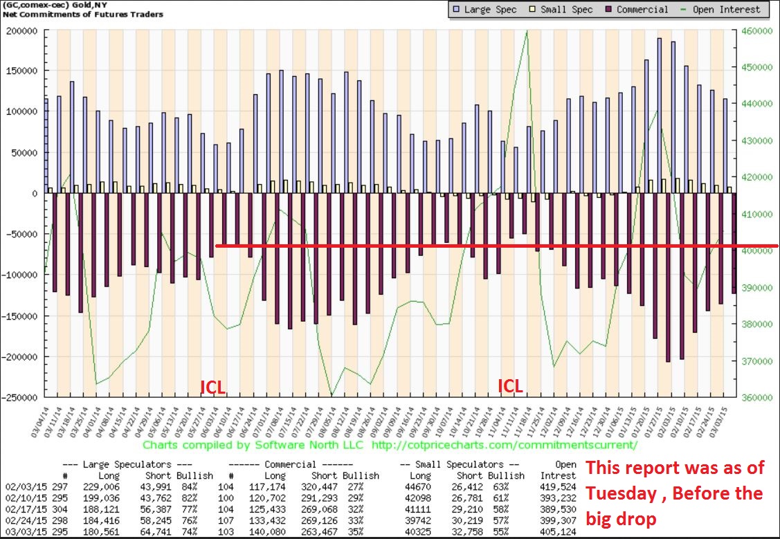 Some look at the COT to see whether smart money is heavily LONG or SHORT GOLD (and you dont want to really trade against the smart money positions). It is only released on Fridays . I marked on the chart the areas where ICL ( LOWS) came in, and the chart represents up until Tuesday onward, so after the selling Wed, Thurs , Fri – the chart would even be better now.