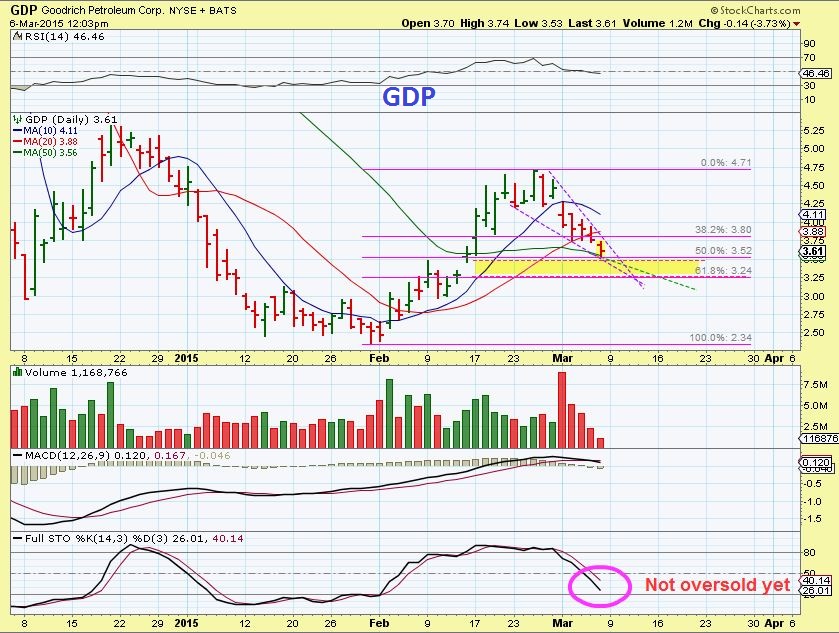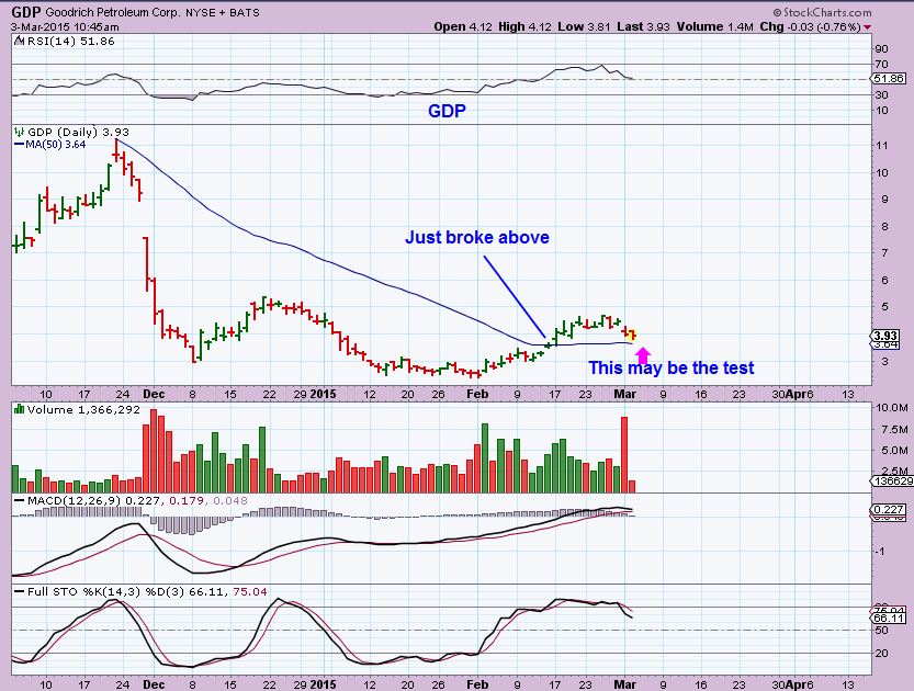Got a few emails about GDP– it dropped to the 50sma. I did say to expect in prior reports on all Energy stocks as they rise above the 50sma. It often gets tested. GDP on March 3.