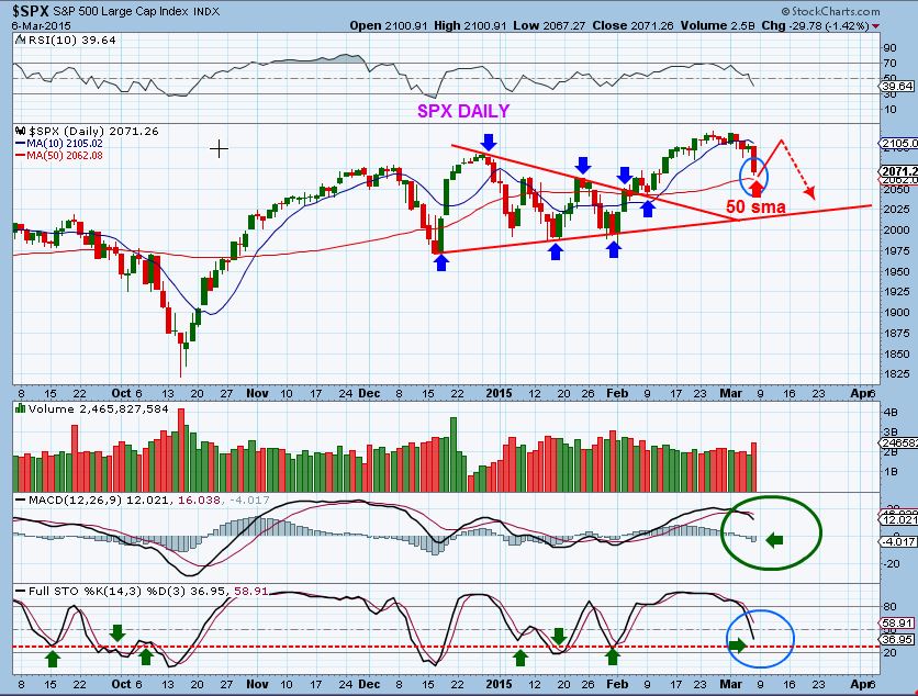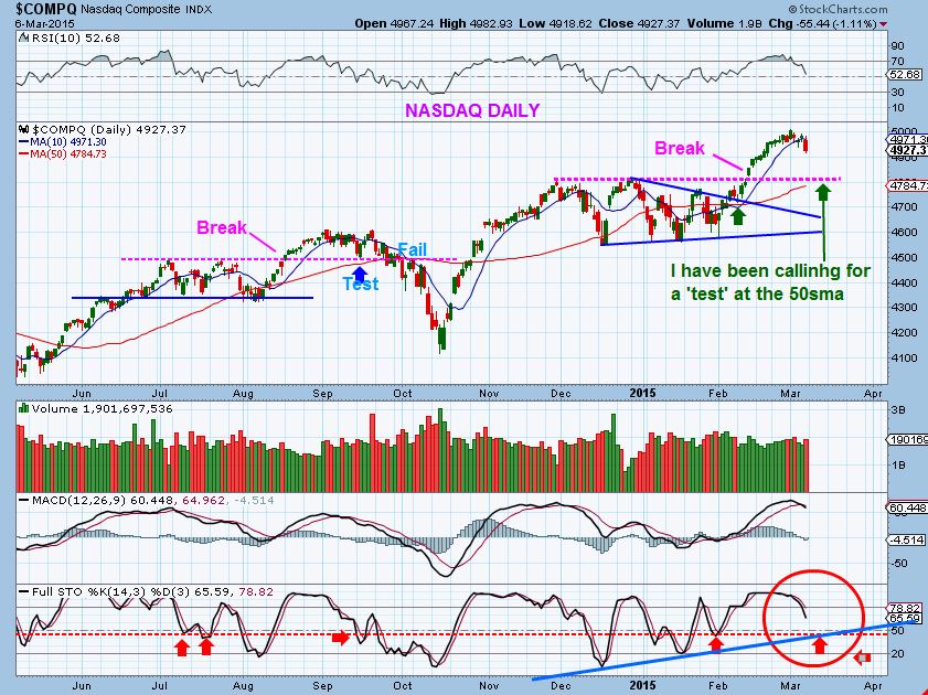 Though the NASDAQ went green for a couple of days after March 3 , the SPX just dropped to that 50sma already. Do you see this chart below?