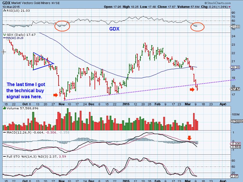 I was going to buy a quick trade yesterday in NUGT when the buy signal hit near 3 p.m. and I captured this chart of GDX. This is only for active traders in front of the screen.