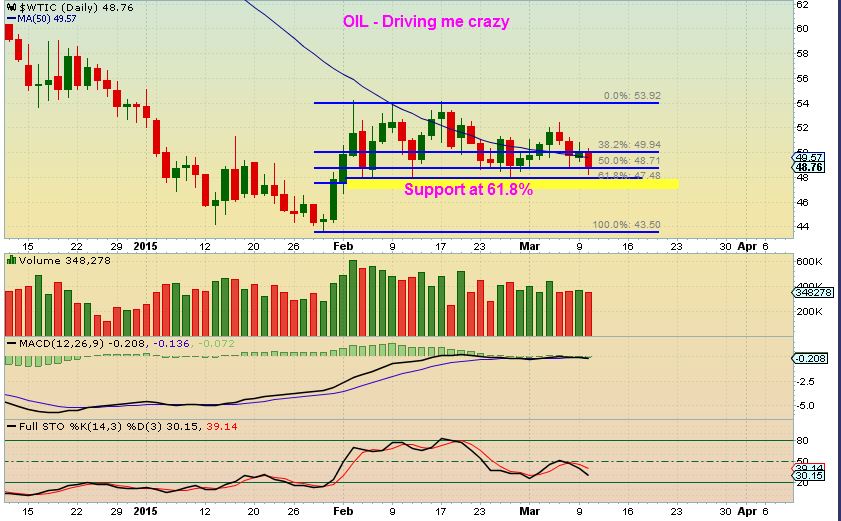 OIL– Nothing has changed from yesterdays report. IT is green and above the 50sma one day, then sells down below the next.