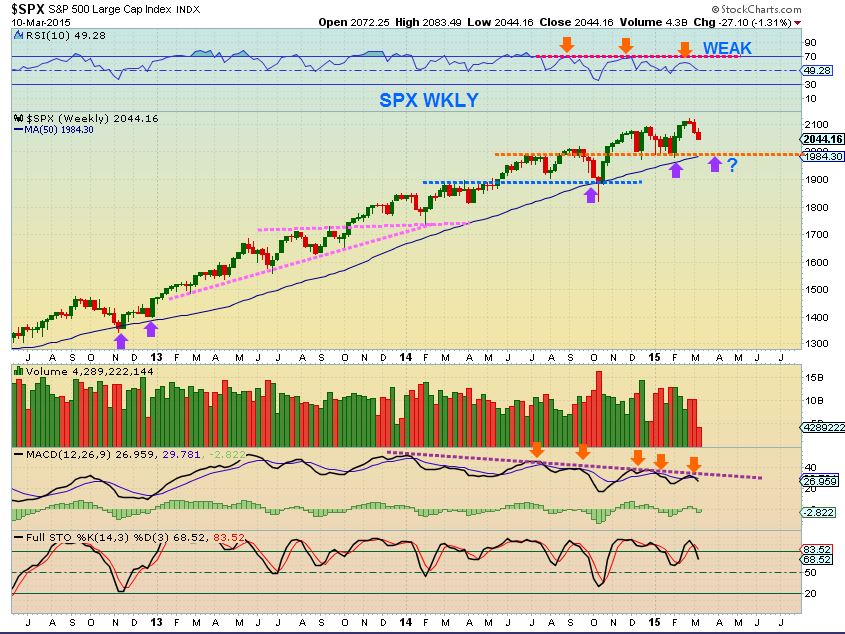 The SPX WKLY – looks like support is lower & the weekly RSI is weakening.