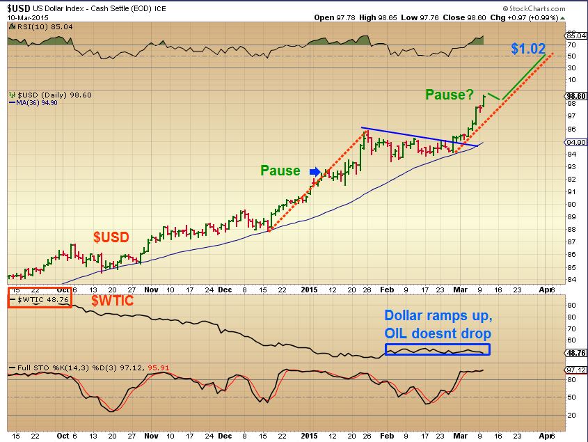 I still find it interesting that the $USD is surging and OIL is not crashing.