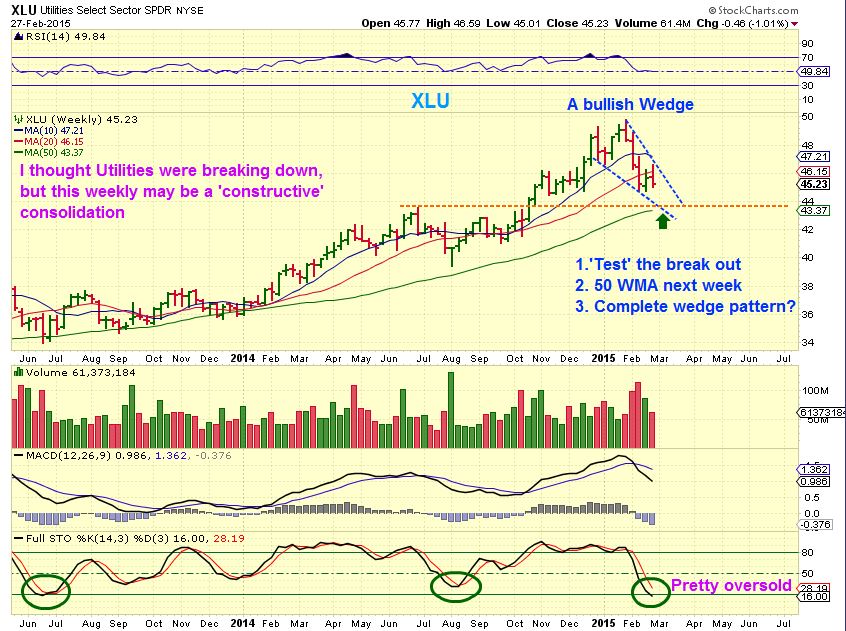 Feb 27 I pointed out that the XLU ( Utilities) Wkly chart looked to be setting up