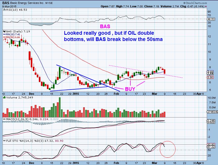 Everything in the market seems to revolve around “Timing”.  The OIL lows were a great time to buy Energy stocks and we caught the lows.  Some broke above the 50sma, tested it, and even ran higher for a 2nd leg up  (EXXI  for example) . Some Energy stocks also bounced around and were weak  ( WRES, I owned it ) .   In Energy I called for the first buy at The lows–  if you bought then and have held on all along,  you likely are still profitable, but have given some gains back  (Like EXXI & GDP  selling down the past few days).