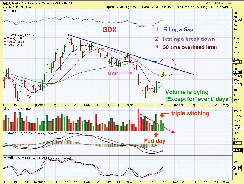 GDX 3/23/2015 – Time will tell. I took a quick 3 day trade in NUGT, and have no positions now.