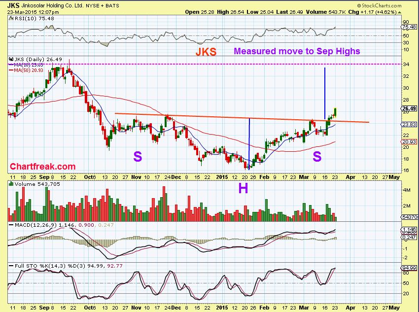 I do like FSLR breaking higher here. It may or may not go straight up from here, but the break out looks legit.