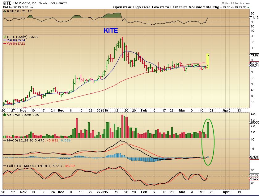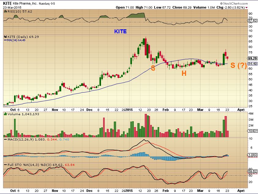 I have friends and relatives that ask me , “What do you think of XXXX?” And I will draw them a quick chart. I also post charts occasionally on TWITTER ( You can see that on my twitter feed at the top of the page). I am just going to post some of those here, for those traders that like to follow charts & can manage their own trades. Some of you just like trade ideas too, so here you might find some. IF I am posting a chart from last week…it may actually even be better now. Really? Yes, I posted the POP in KITE last week.