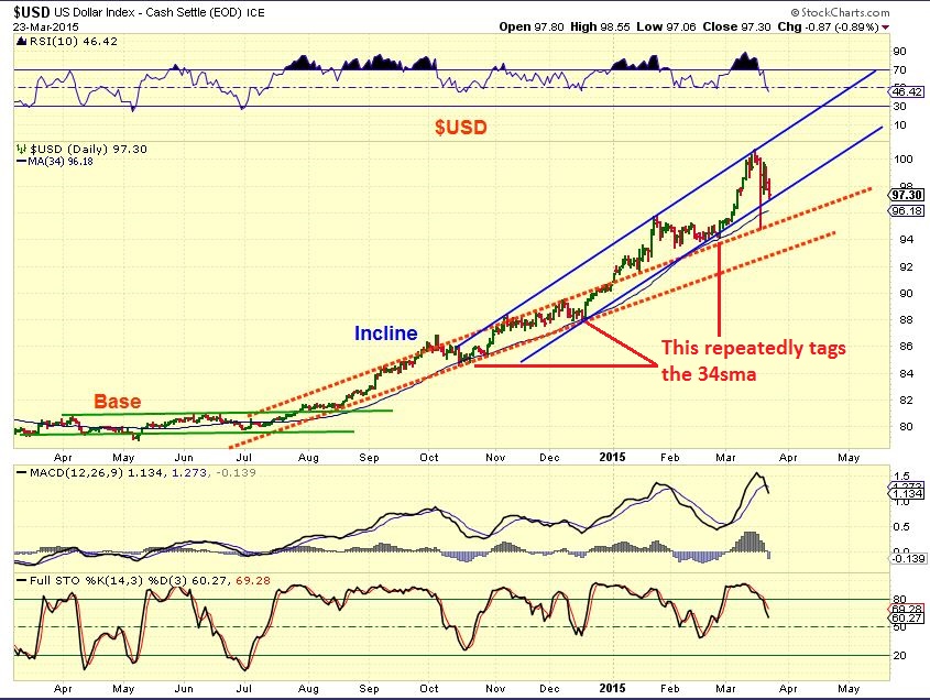 In the weekend report I posted this , mentioning that it could mean the the Dollar has completed its move higher (for now) .