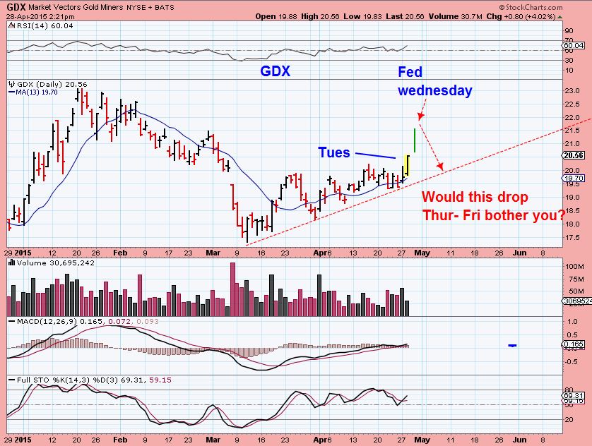 Knowing that, you can buy some positions in your favorite miners if you want , and understand how you will feel if this gaps down Thursday to shake you out. Remember this GDX chart I pointed out? WHAT IF the FED says something that will slam us down for 3 straight days like early December? Will you be ok in a position that gets stopped out? or should you wait until Thursday to enter, after the shaking ?