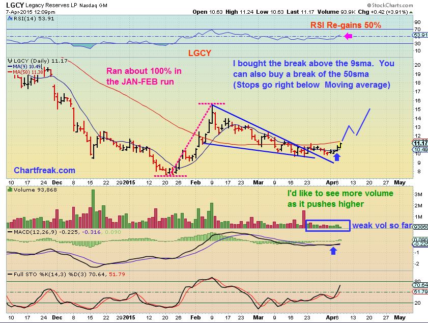 I sold out of CLNE two days ago (too early but above today’s close). I got stopped out of EXXI also, by a few cents (darnit!). Thinking of SFY or re-entry on EXXI soon. Do you still like energy (pending tomorrow’s action)? I think oil needs to push back up tomorrow elsewise risks rolling over with horrid inventory numbers. Thinking maybe to move on to some of the tech stocks that Alex has been showing; I’m horribly undiversified.