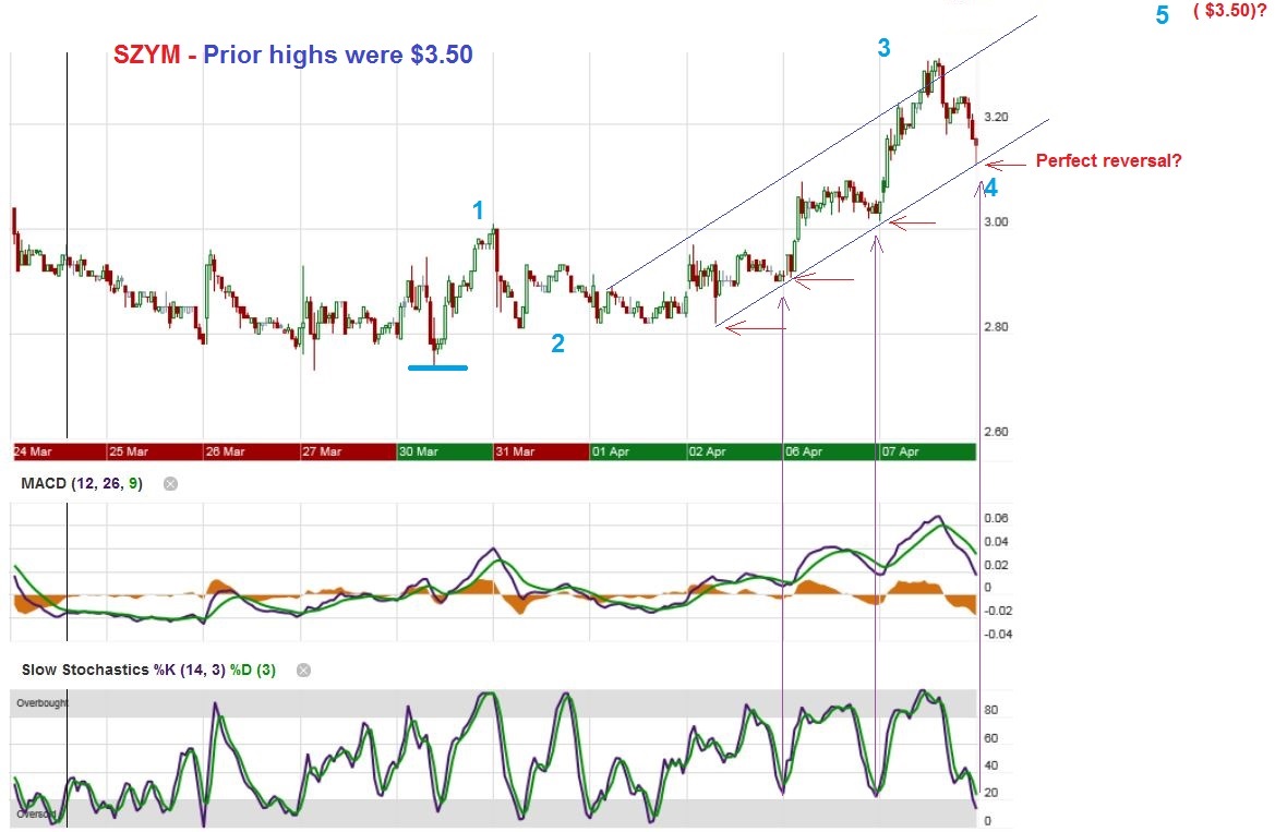 This was SZYM 10 day –  looks great. The pullback into the close was  “Normal”  and I wrote that I still expected to see $3.50