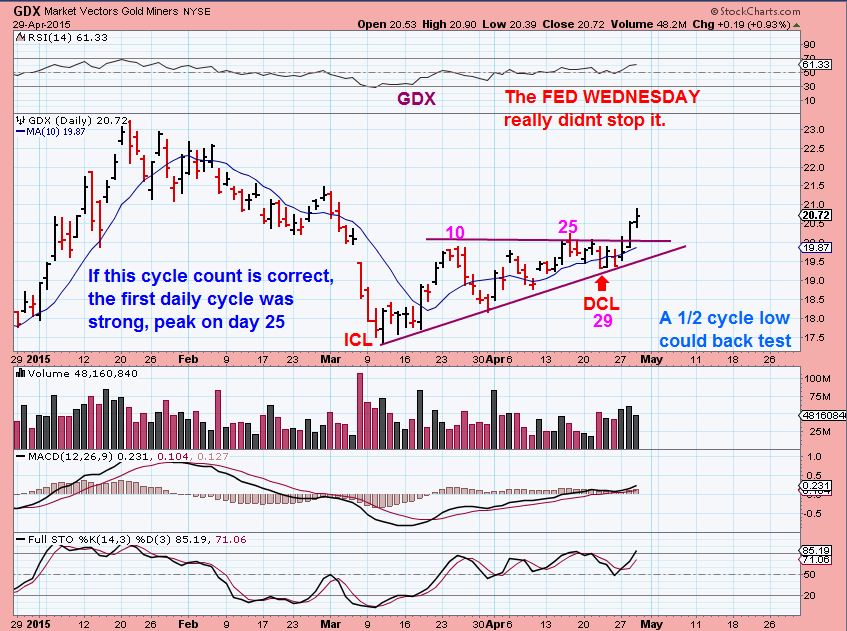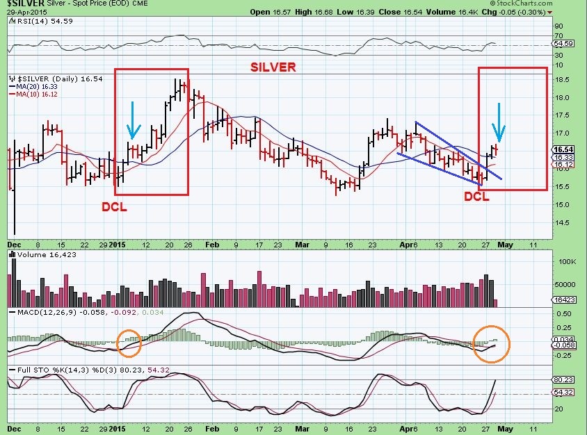 I posted charts in the past 2 reports, and I showed that SIL  ( silver stocks – I posted a chart of   EXK  too) broke out a couple of days ago.  They actually pulled back a bit Wednesday.  Feeling strongly that the DCL is in, and now seeing that the Miners are leading GOLD & SILVER…then we can buy the dips at reasonable areas of pullback.