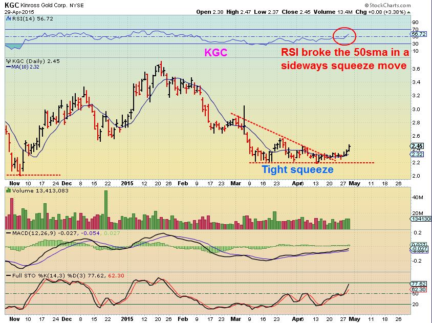 KGC – Didnt sell off Wednesday, breaking from a tight formation.